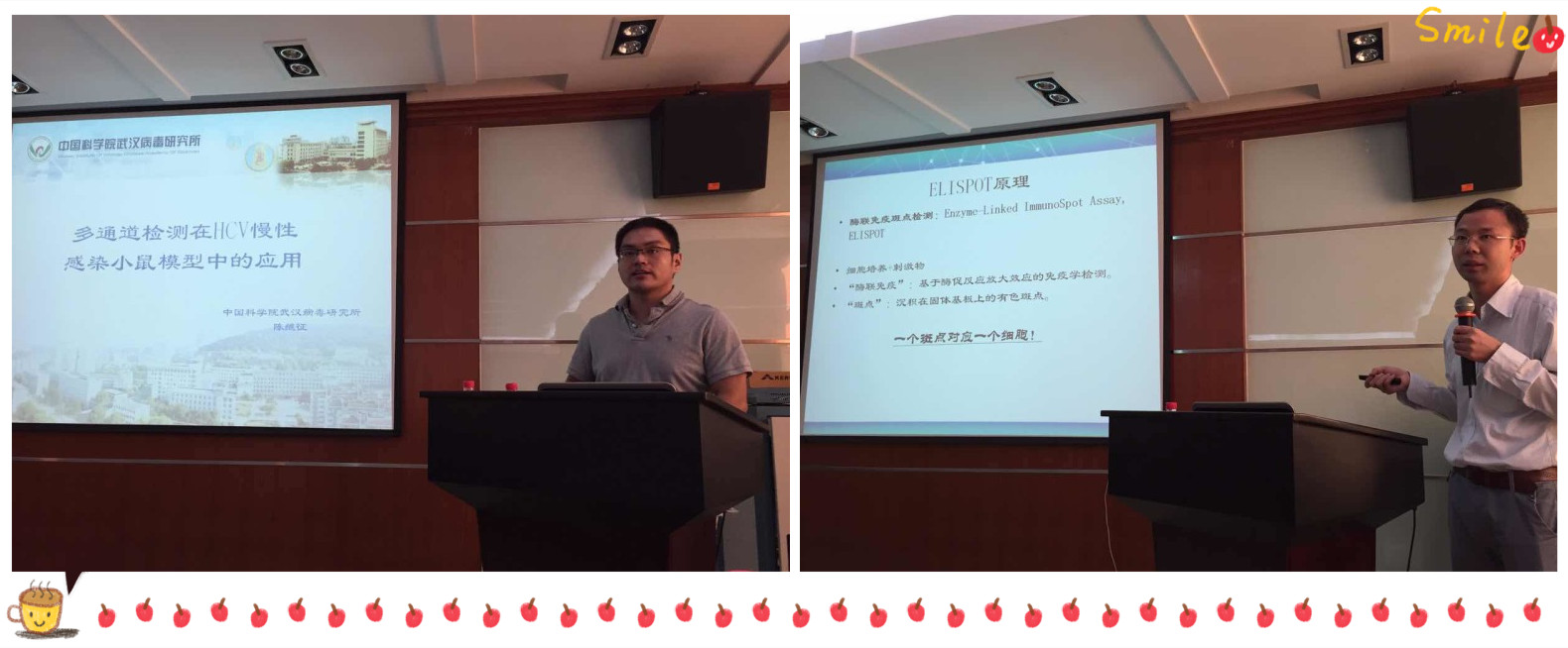 接下來是中國科學院武漢病毒研究所陳繼征副研究員作報告,陳老師首先給我們介紹流式的一些相關背景知識,如多色流式的原理及實驗操作中需要注意的要點,隨后又給我們講解多通道流式在HCV病毒研究中的應用,HCV感染的發生機制等研究成果。