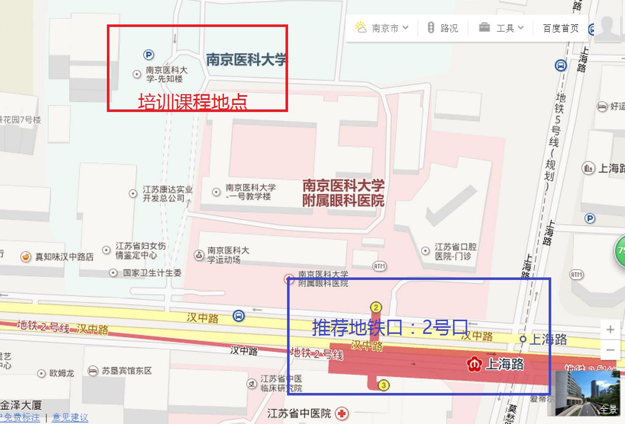 南京南站、南京站:地鐵1號線至新街口站換乘2號線至上海路站2號口出即可。