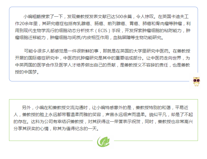 2017年3月16日,英國卡迪夫大學(xué)的華人科學(xué)家姜文國教授在倫敦白金漢宮接受了英國王儲(chǔ)查爾斯親王親自授予的2017年度“大英勛章”,表彰其在“國際癌癥研究方面的突出貢獻(xiàn)”, 成為首位獲得這一榮譽(yù)勛章的原籍為中國大陸的科學(xué)家。