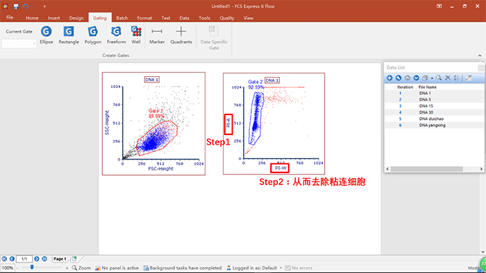 a.粘連細胞去除之后,可直接調用Denovo自帶的細胞周期分析模板,完成數據分析,具體操作如下: