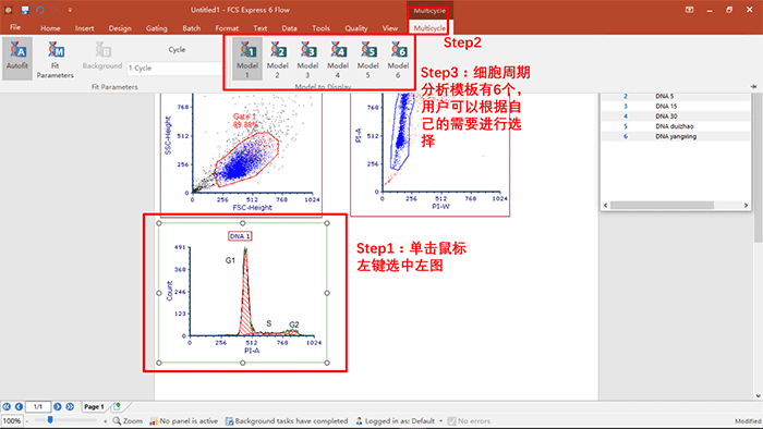 ? 演示內容:細胞周期數據的分析,關于細胞周期各個參數的調用,統計學圖表的建立