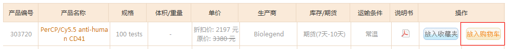 在產品目錄中點擊“放入購物車”,可以將產品放入購車車中。