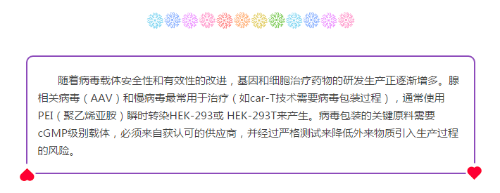 大規模Car-T病毒包裝就用它啦,法國Polyplus的PEIpro?轉染試劑,還有臨床級別哦!