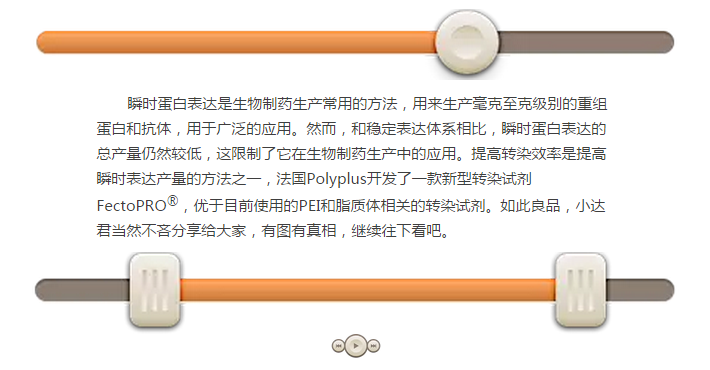 高質量質粒DNA的制備成本非常高,尤其是在進行大規模蛋白質生產時需要大量的DNA和許多質粒。FectoPRO?通過使用0.4~0.6 μg/106/ml的細胞培養液將DNA成本縮減了40%~60%,使其成為生物制藥生產流程的一項經濟實惠的選擇。
