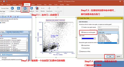 如所示的方形門不能正確的圈出細胞群,可按以下步驟將該門改變為自由形門等。