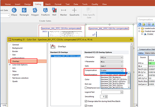 點擊OK,則FITC滲漏到PE通道的熒光被扣除。