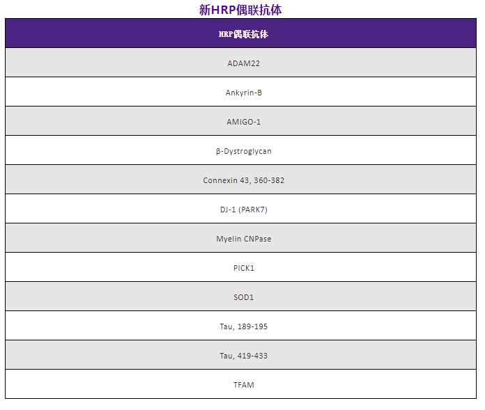 針對(duì)Tau和其他靶標(biāo),我們還準(zhǔn)備了幾種HRP標(biāo)記抗體,通過縮短整個(gè)流程使WB更簡(jiǎn)易。