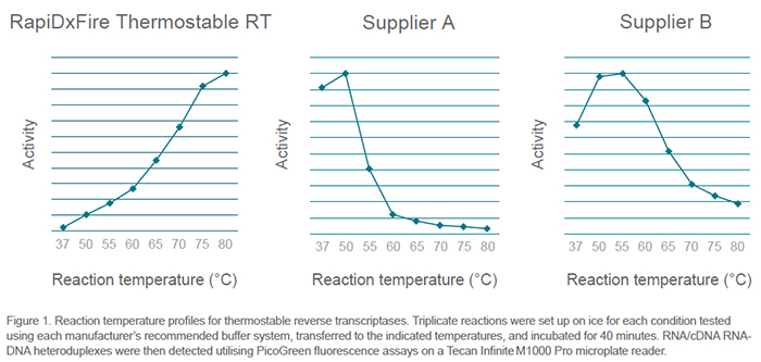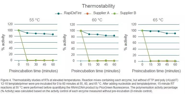 • RapiDxFire耐高溫逆轉錄酶在高溫下表現佳