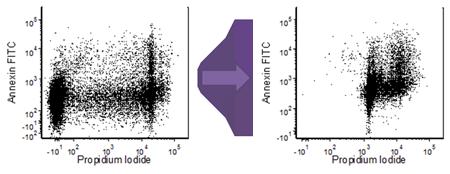 流式細(xì)胞分析時(shí),樣本細(xì)胞中一般都含有一定量的死細(xì)胞,通過(guò)一定的方法可以減少樣本中死細(xì)胞的比例,但是完全去除樣本中的死細(xì)胞幾乎是不可能的。但流式分析的目標(biāo)為活細(xì)胞,因此流式分析時(shí)將死細(xì)胞當(dāng)作活細(xì)胞來(lái)分析,會(huì)嚴(yán)重影響流式分析的結(jié)果,通常可以選擇熒光染料來(lái)標(biāo)記區(qū)分死活細(xì)胞的方法,下面介紹一些流式分析時(shí)區(qū)分死細(xì)胞和活細(xì)胞的簡(jiǎn)單方法。